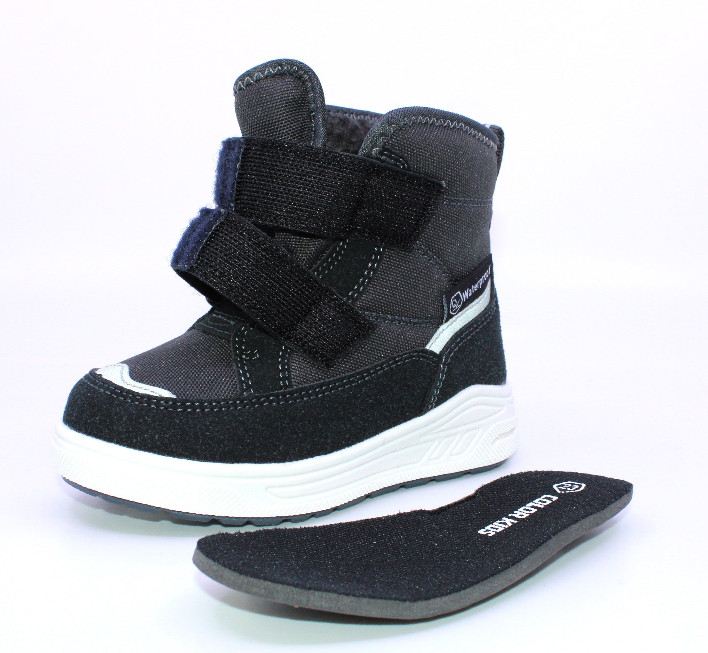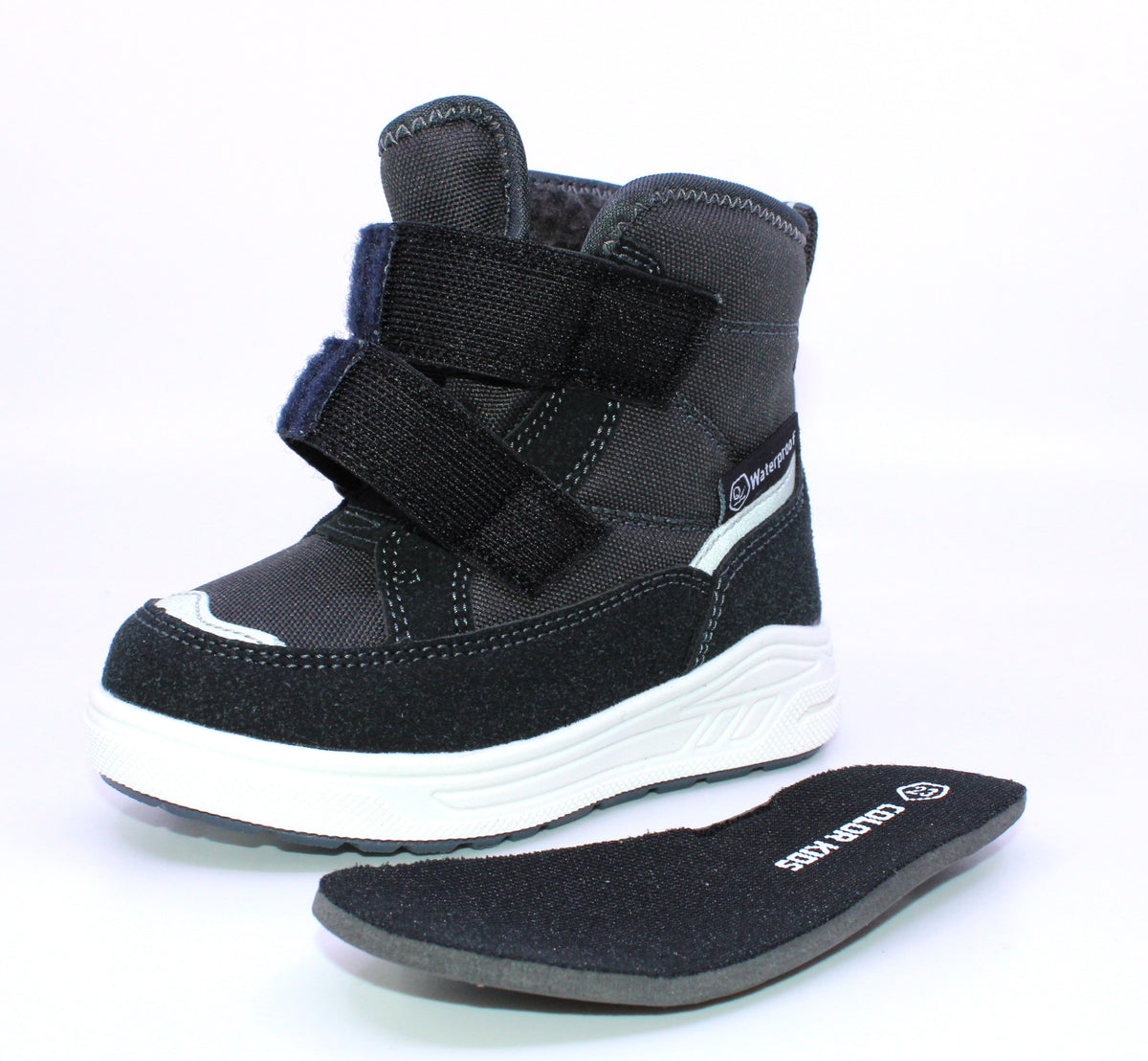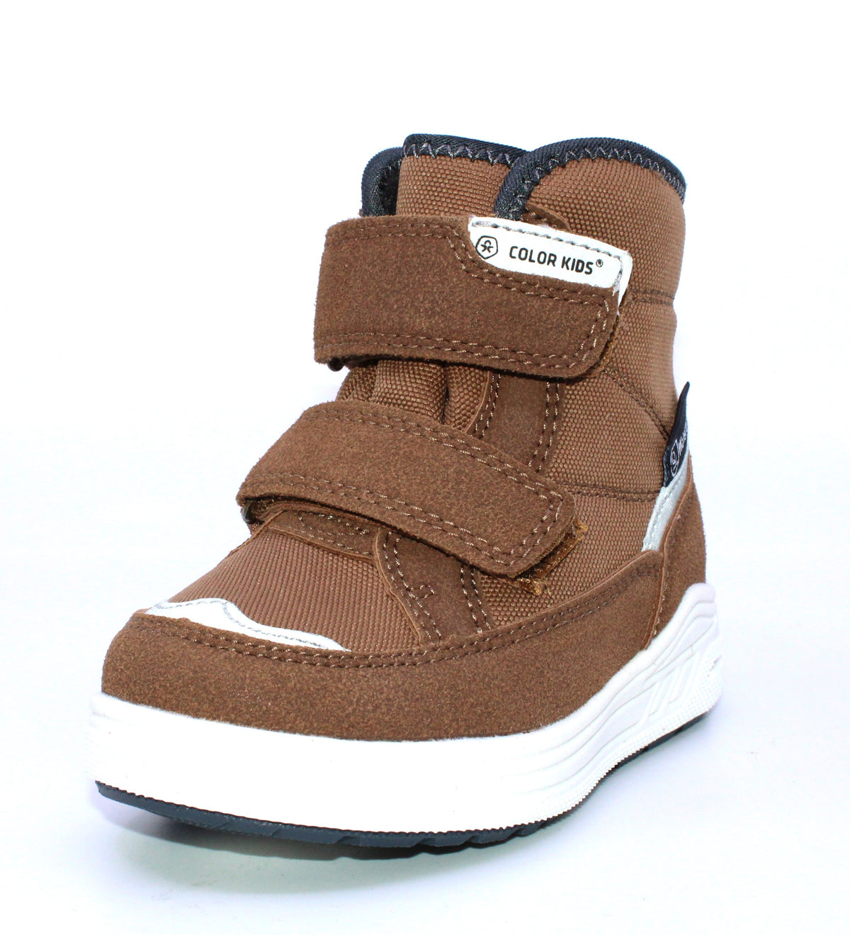 Prendre une grandeur de plus que le pied mesuré. Le bottillon COLOR KIDS Boots W Velcro G est idéal pour le printemps et l’automne. Il est waterproof et légèrement doublé pour tenir les pieds de votre enfant au chaud jusqu’à environs -5°C. Son double velcro permet de bien l’ajuster et de l’enfiler facilement et rapidement. Sa semelle intérieure est confortable et sa semelle extérieure est antidérapante.