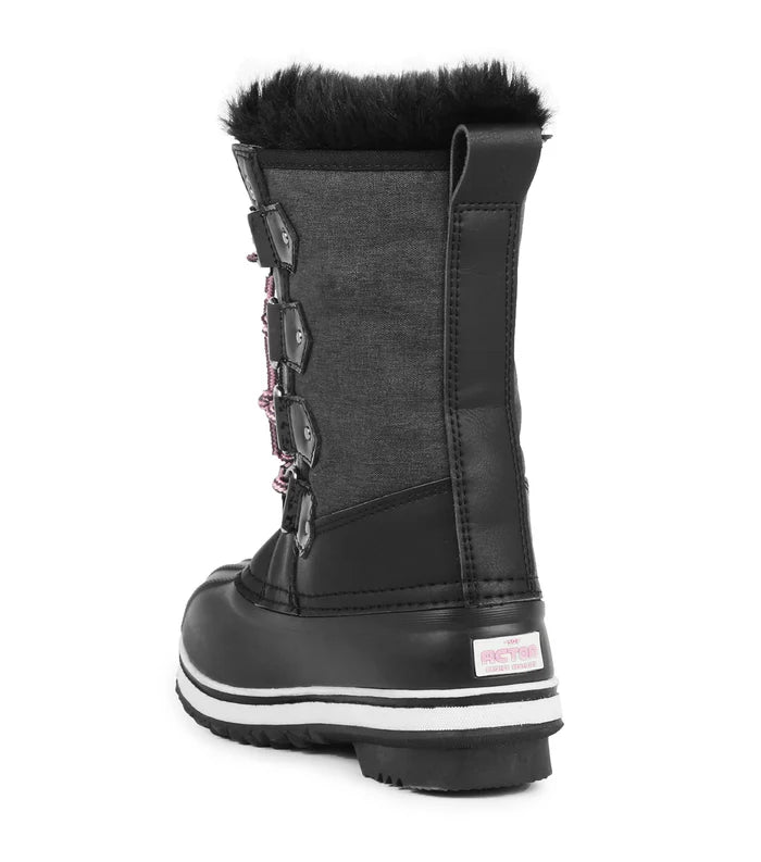 La botte d’hiver ACTON Cortina F est faite de caoutchouc et de tissus imperméables. Son lacet bungee permettent de bien l’ajuster et de l’enfiler facilement et rapidement. Son feutre amovible offre l’option de le sortir de la botte pour le faire sécher après une journée de jeux. Elle tiendra les pieds de votre enfant au chaud jusqu’à -45°C. (A8298)