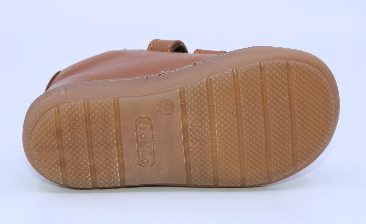 Prendre la même grandeur que le pied mesuré. La bottine FRODDO G2130328 G est faite de cuir véritable tanné de manière naturelle. Jolie, légère et flexible, elle accompagnera la marche de votre bébé avec soutien et confort. Ses deux velcros permettent de l’enfiler facilement et rapidement.