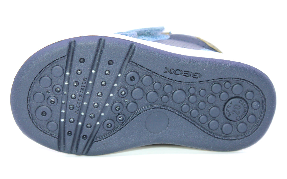 Prendre la même grandeur que le pied mesuré. La bottine Geox Biglia G A-25 accompagnera la marche de votre bébé avec soutien et confort. Ses deux velcros permettent de bien l’ajuster et de l’enfiler facilement et rapidement. La technologie exclusive brevetée fait en sorte que la semelle extérieure respire, optimisant ainsi le confort. La semelle intérieure amovible, étudiée pour assurer commodité et hygiène est idéal pour garder les pieds au sec. (BO44DD 08522 C4264)