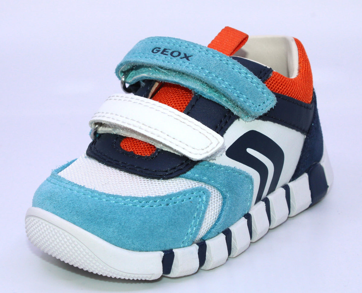Prendre la même grandeur que le pied mesuré. La bottine Geox Iupidoo G accompagnera la marche de votre bébé avec soutien et confort. Le double velcro permet de bien l’ajuster et de l’enfiler facilement et rapidement. La technologie exclusive brevetée fait en sorte que la semelle extérieure respire, optimisant ainsi le confort. La semelle intérieure amovible, étudiée pour assurer commodité et hygiène est idéal pour garder les pieds au sec. (B3555D 02014 C0916-C4079)