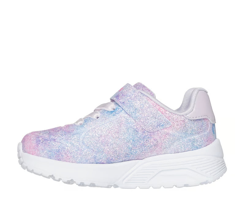 Prendre une grandeur de plus que le pied mesuré. L’espadrille SKECHERS Cloudy Spell F est faite de tissu. Son lacet élastique et son velcro permettent de l’enfiler facilement et rapidement. Sa semelle intérieure offre un confort coussiné et sa semelle extérieure absorbe les chocs.