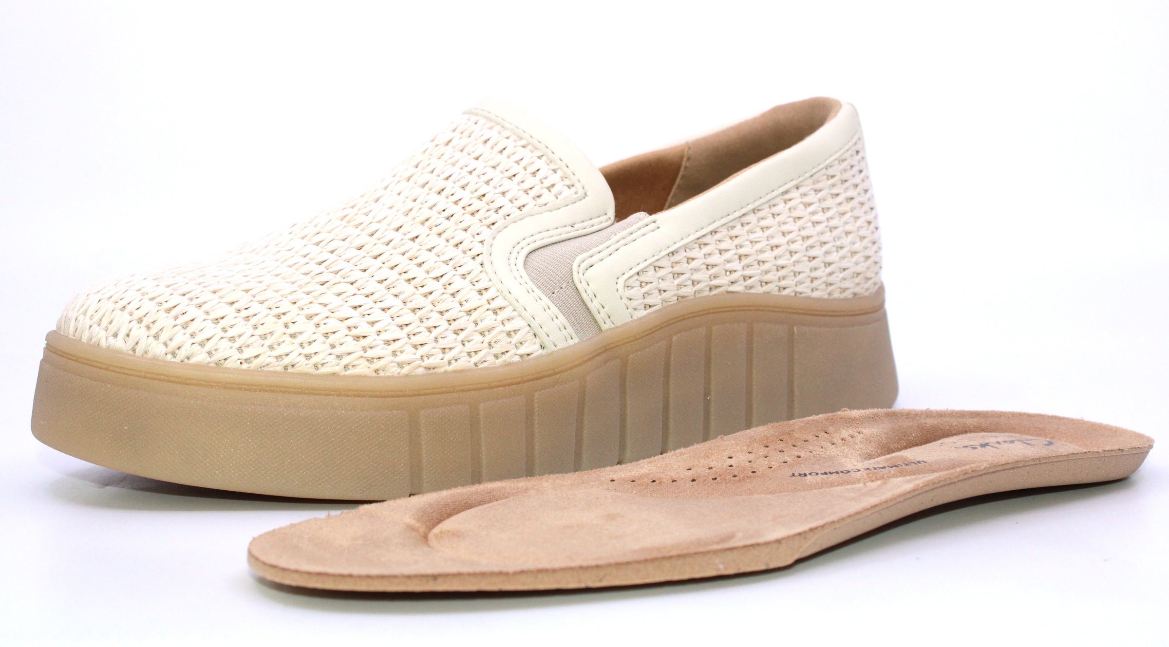 Le soulier CLARKS Mykah Shine W est fait de tissu. Il s’enfile facilement et rapidement en y glissant simplement le pied. Sa semelle intérieure est amovible et sa semelle extérieure est antidérapante. Disponible en largeur : Medium (régulier).