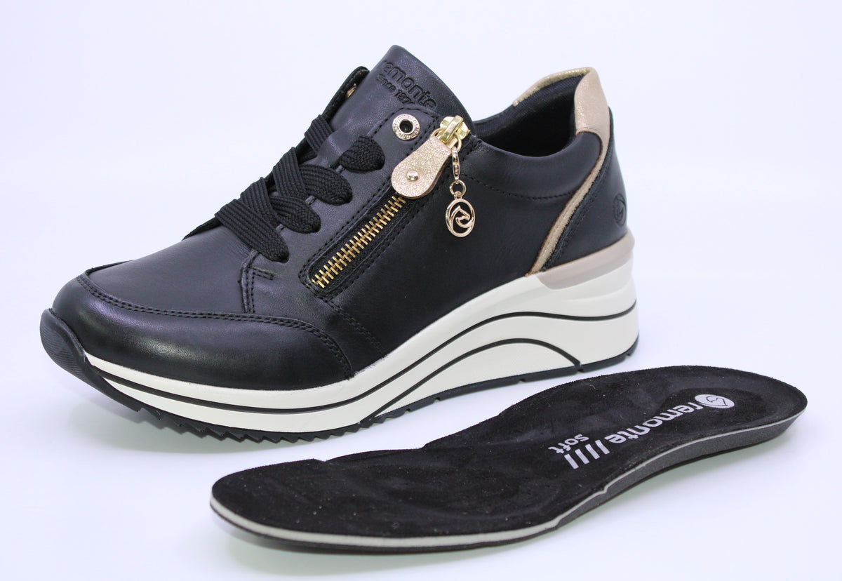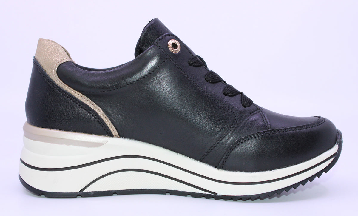 Le soulier REMONTE D0T03 est fait de cuir. Son lacet permet de bien l’ajuster au pied et son zip de l’enfiler facilement et rapidement. Sa semelle intérieure est amovible et possède une assise plantaire pour le confort de vos pieds. Sa semelle extérieure est antidérapante et son talon compensé vous élèvera toute en restant stable.
