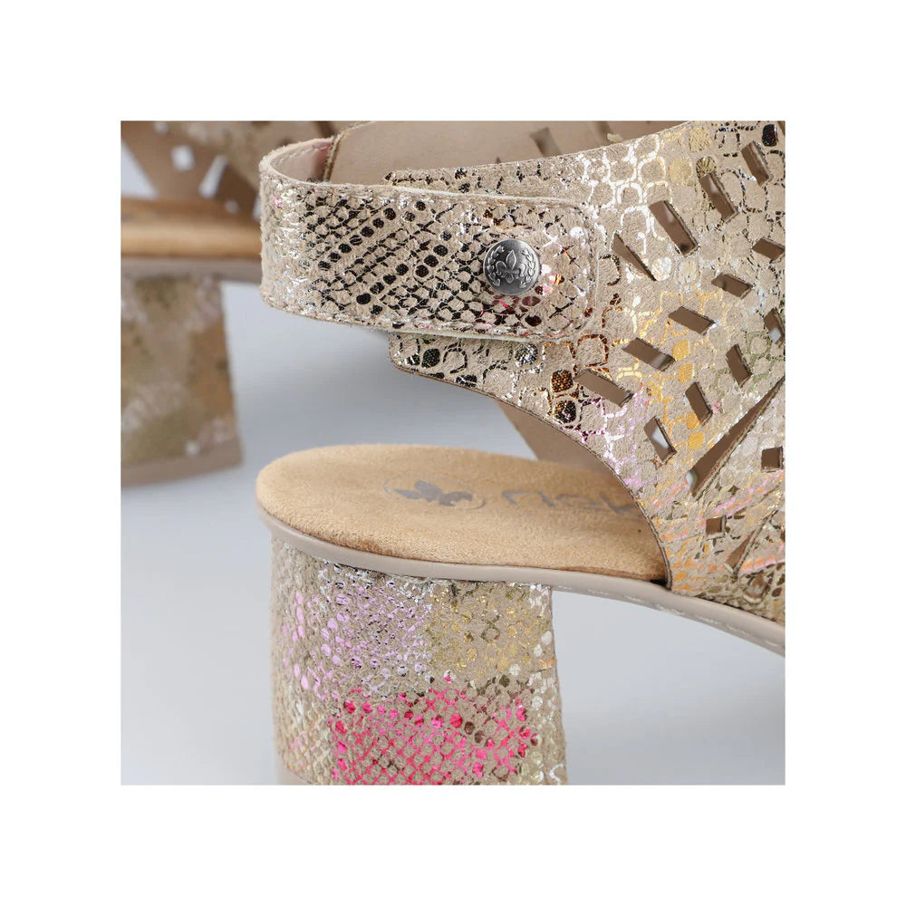 La sandale RIEKER 64780 W est fait de cuir synthétique. Son velcro permet un ajustement optimal et facilite l’enfilage du pied. Son talon compensé vous élèvera tout en restant stable. Sa semelle intérieure est confortable et sa semelle extérieure est antidérapante.