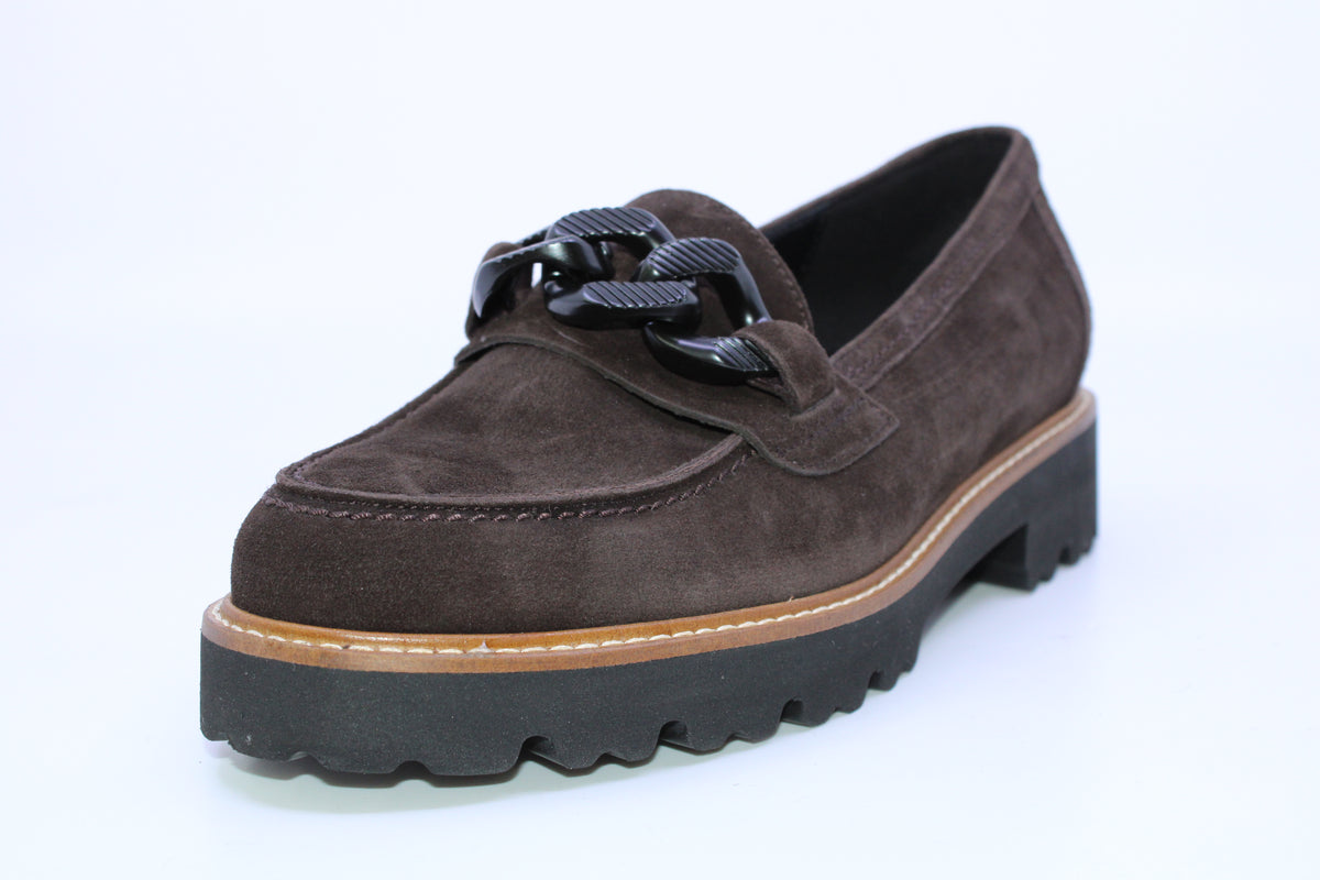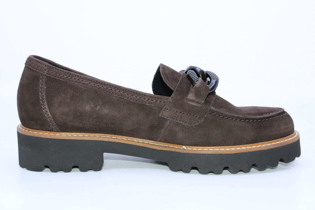 Le soulier GABOR 75.240 W est fait de suède. Il s’enfile facilement et rapidement en y glissant simplement le pied. Sa semelle intérieure est amovible et sa semelle extérieure est antidérapante.