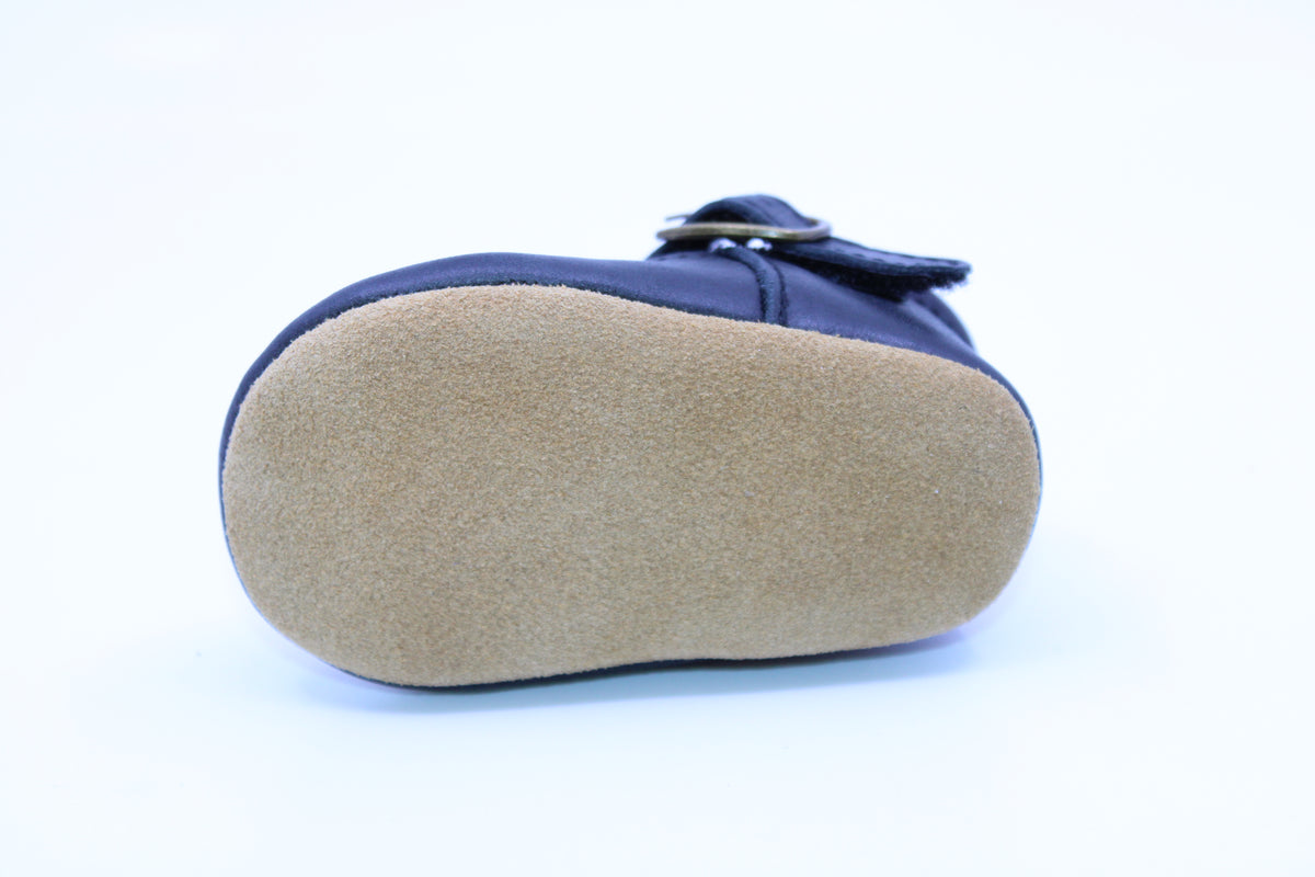 La pantoufle HEDGEHUG Riley F est faite de cuir véritable. Son velcro imitation boucle à la cheville permet de l’enfiler facilement et rapidement. Sa semelle souple bougera avec votre bébé sans restriction et sa semelle extérieure est en suède pour plus de stabilité. Grandeurs : 1 (nouveau-né), 2 (0-6 mois), 3 (6-12 mois), 4 (12-18 mois). Entreprise familiale basé à Montréal.