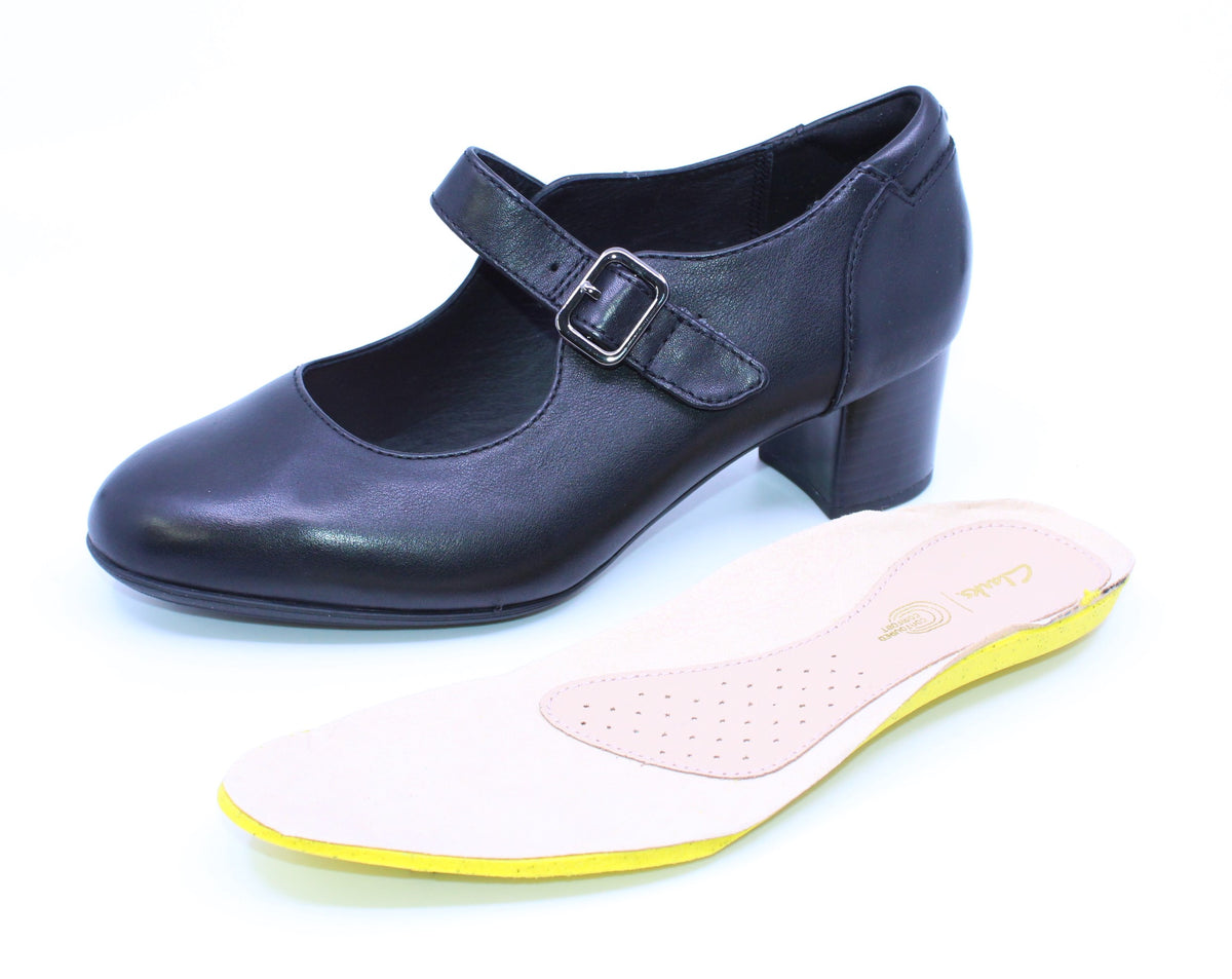 Le soulier CLARKS Linnae Walk en cuir est classique et élégant. Son moyen talon vous élèvera toute en restant stable. Sa semelle intérieure est amovible et sa semelle extérieure est antidérapante. Un incontournable à avoir dans votre garde-robe !! Disponible dans la largeur (W) Wide : pour les pieds large.