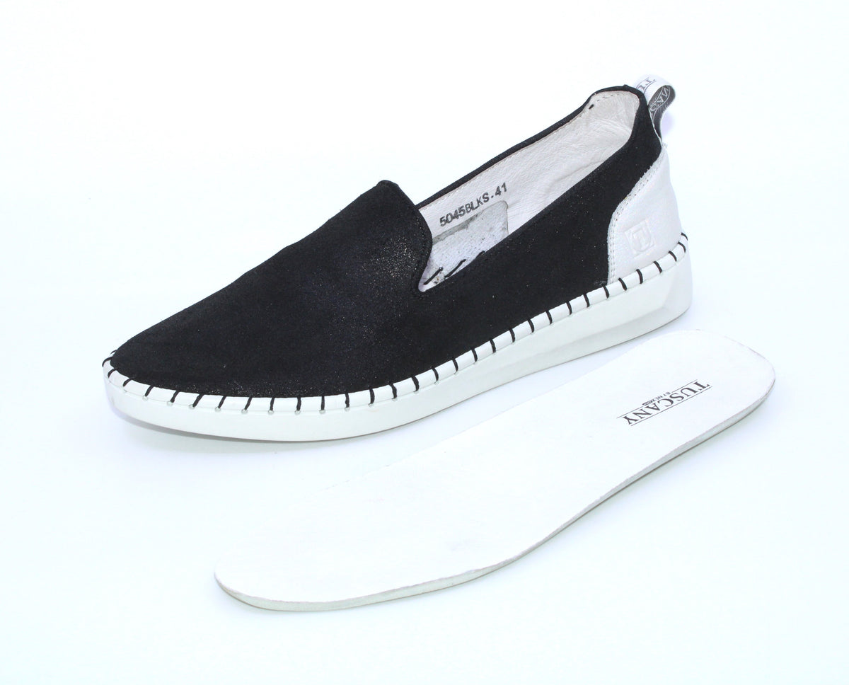 ***VENTE FINALE, AUCUN ÉCHANGE, AUCUN REMBOURSEMENT, AUCUNE NOTE DE CRÉDIT***Le soulier TUSCANY Sya est fait de cuir suédé souple. Son aspect scintillant lui ajoute une touche d’élégance. Il vient avec un assortiment de semelles amovibles pour un meilleur ajustement et un confort optimal. Il suffit d’y glisser le pied !!