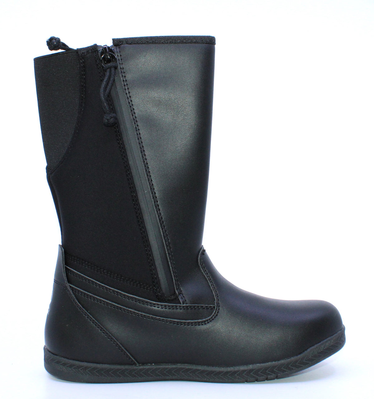 La botte de pluie BILLY FOOTWEAR B21323 G Rain est tout simplement révolutionnaire !! Son cuir synthétique enduit et son néoprène sont imperméables. Ses deux zips latéraux et son élastique à l’arrière de la jambe permettent une grande ouverture et facilite l’enfilage. Elle est conçue pour y insérer votre orthèse et convient même à certain type d’orthèse tibial. Le fondateur de cette compagnie est lui-même en fauteuil roulant et il avait de la difficulté à trouver des chaussures faciles à mettre, il les a donc inventés. MERCI monsieur Billy !!