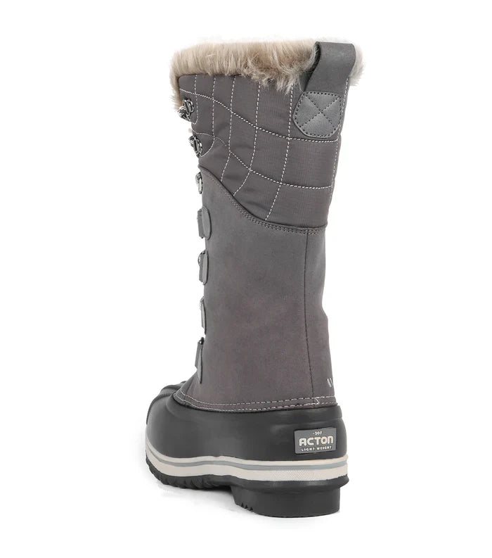 La botte d’hiver ACTON Emma W est faite de caoutchouc et de tissus imperméables. Son lacet permet de bien l’ajuster. Son feutre amovible offre l’option de le sortir de la botte pour le faire sécher après une longue journée à l’extérieur. Elle tiendra vos pieds au chaud jusqu’à -45°C.