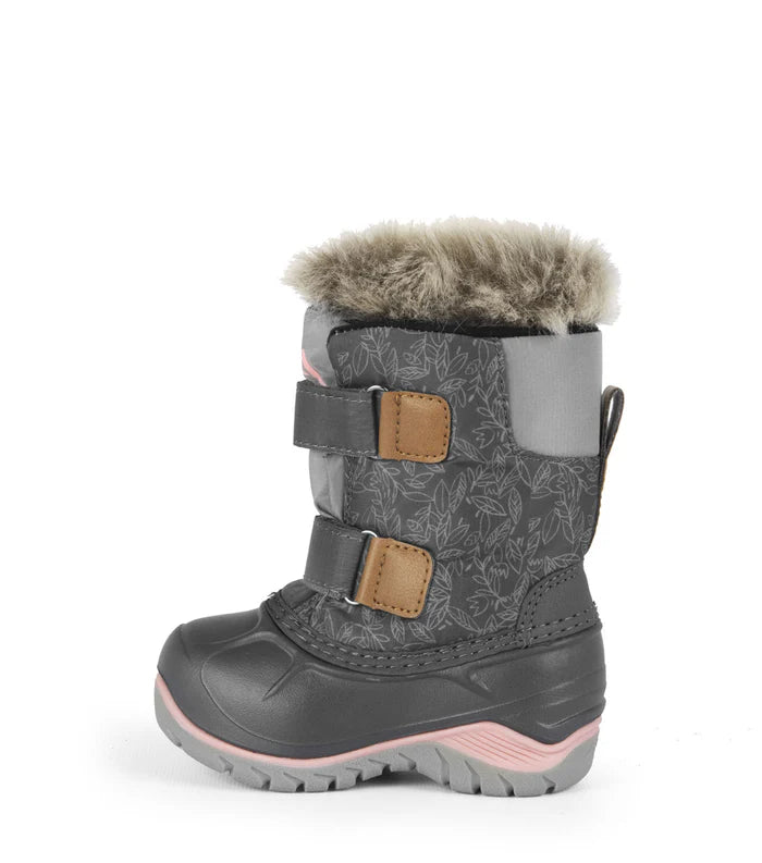 La botte d’hiver ACTON Funky F est faite de caoutchouc et de tissus imperméables. Ses deux velcros permettent de bien l’ajuster et de l’enfiler facilement et rapidement. Son feutre amovible offre l’option de le sortir de la botte pour le faire sécher après une journée de jeux. Elle tiendra les pieds de votre enfant au chaud jusqu’à -40°C. Convient généralement aux pieds réguliers à larges et bombés. (A8387)