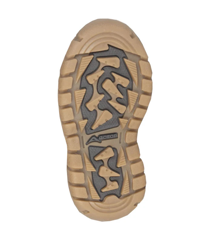 La botte d’hiver ACTON Funky G est faite de caoutchouc et de tissus imperméables. Ses deux velcros permettent de bien l’ajuster et de l’enfiler facilement et rapidement. Son feutre amovible offre l’option de le sortir de la botte pour le faire sécher après une journée de jeux. Elle tiendra les pieds de votre enfant au chaud jusqu’à -40°C. Convient généralement aux pieds réguliers à larges et bombés. (A8387)