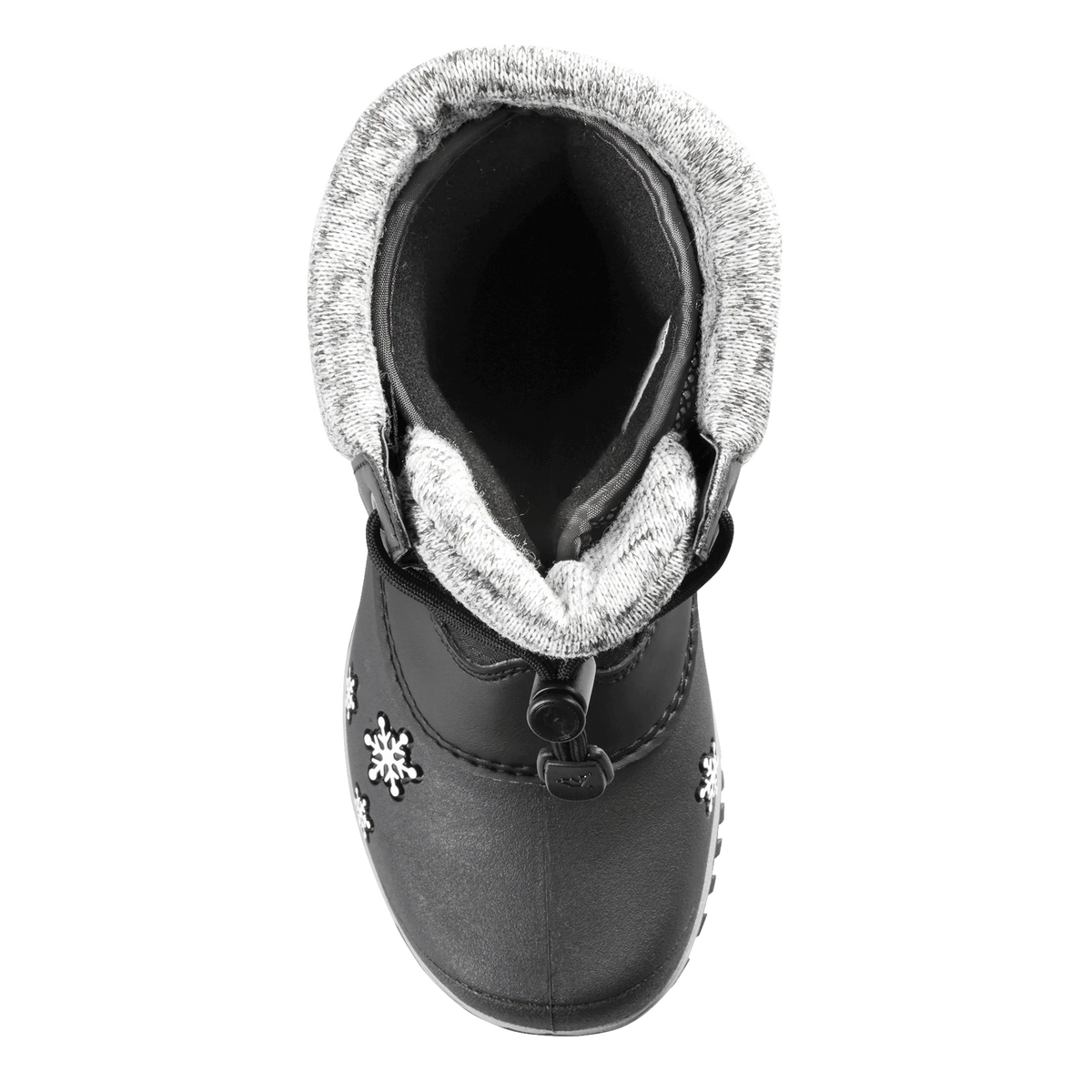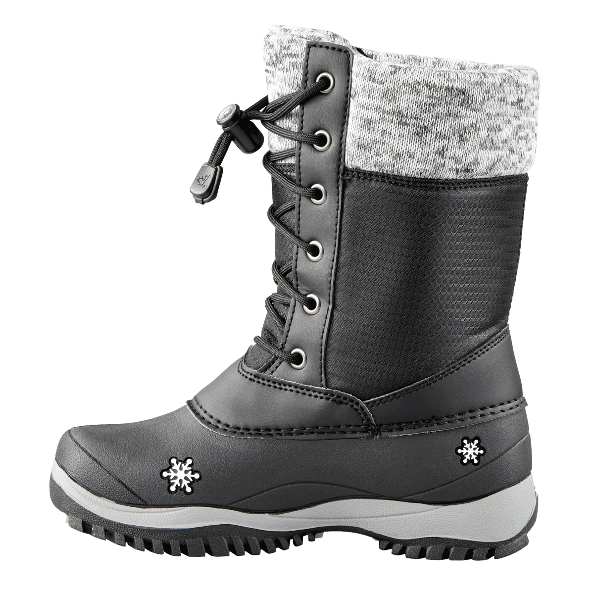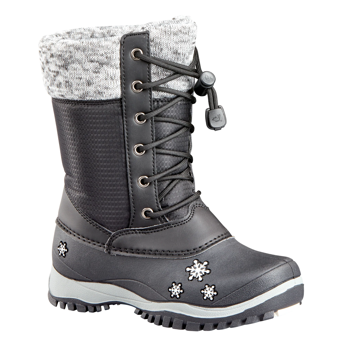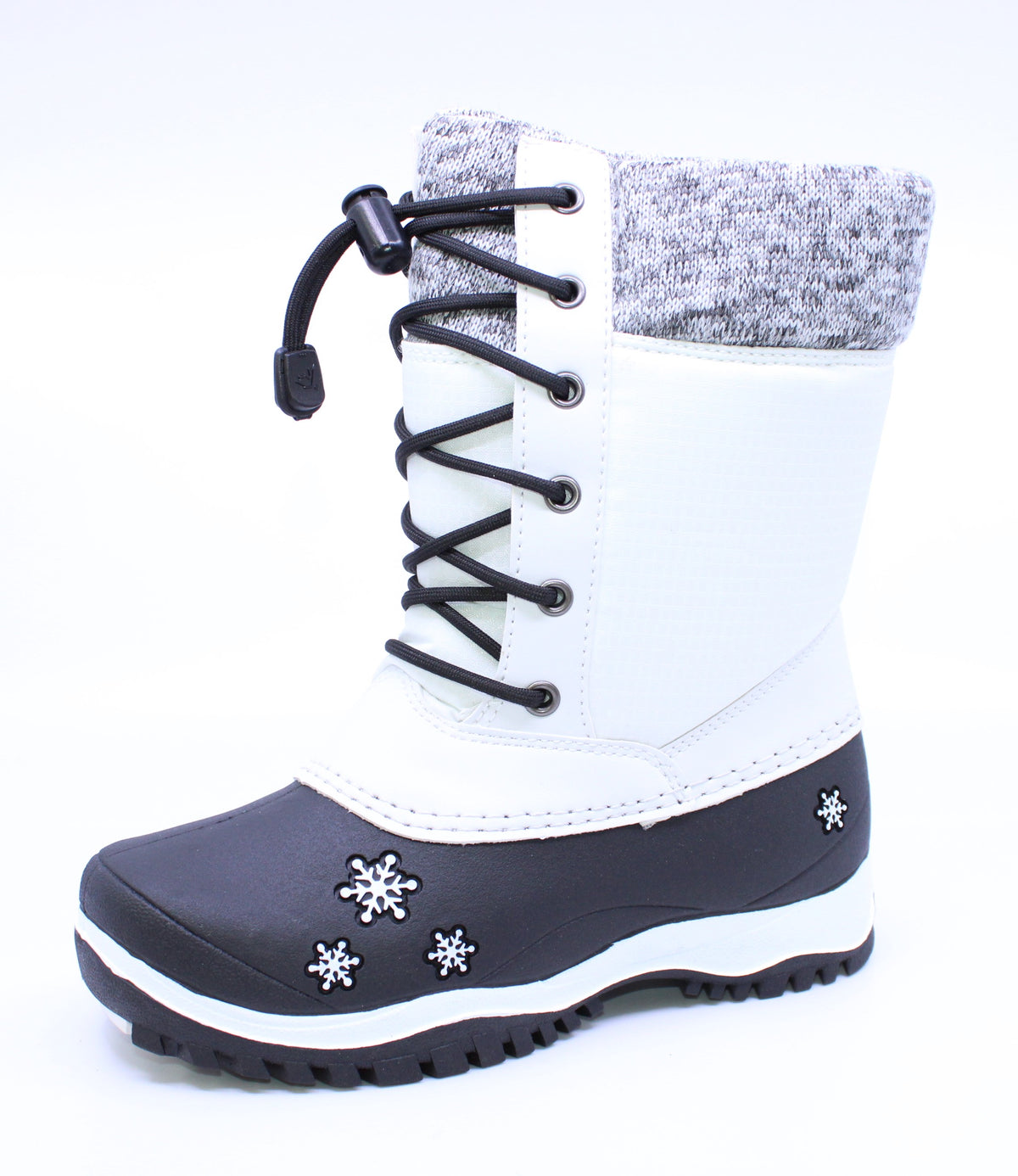 La botte d’hiver BAFFIN Avery F est faite de caoutchouc et de tissus imperméables. Son lacet bungee permettent de bien l’ajuster et de l’enfiler facilement et rapidement. Son col en tricot ajoute un joli détail. Son feutre amovible offre l’option de le sortir de la botte pour le faire sécher après une journée de jeux. Elle tiendra les pieds de votre enfant au chaud jusqu’à -40°C.