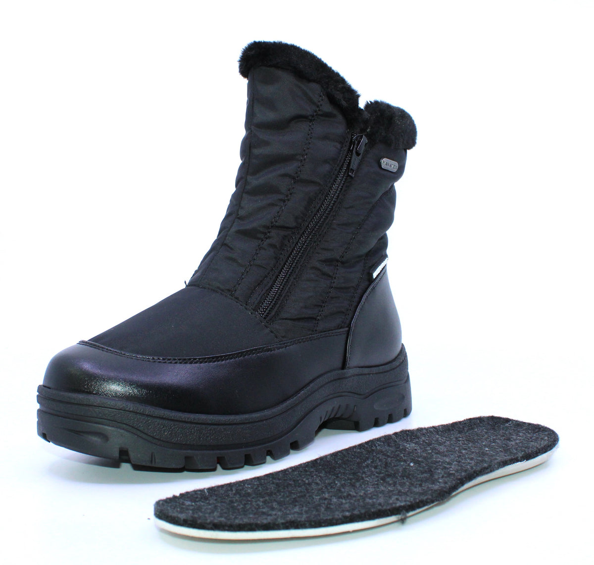 La botte d’hiver NAVATEX 197450 W est facile d’entretien, légère et idéale pour les hivers canadiens. Elle est waterproof et sa doublure en laine tiendra vos pieds au chaud jusqu’à -30 °C. Ses deux zips latéraux permettent de l’enfiler facilement et rapidement. Sa semelle intérieure amovible est idéale pour la faire sécher et sa semelle extérieure est antidérapante. Son système de crampons à bascule permet de les retourner pour les sortir au besoin pour plus de stabilité sur la glace.