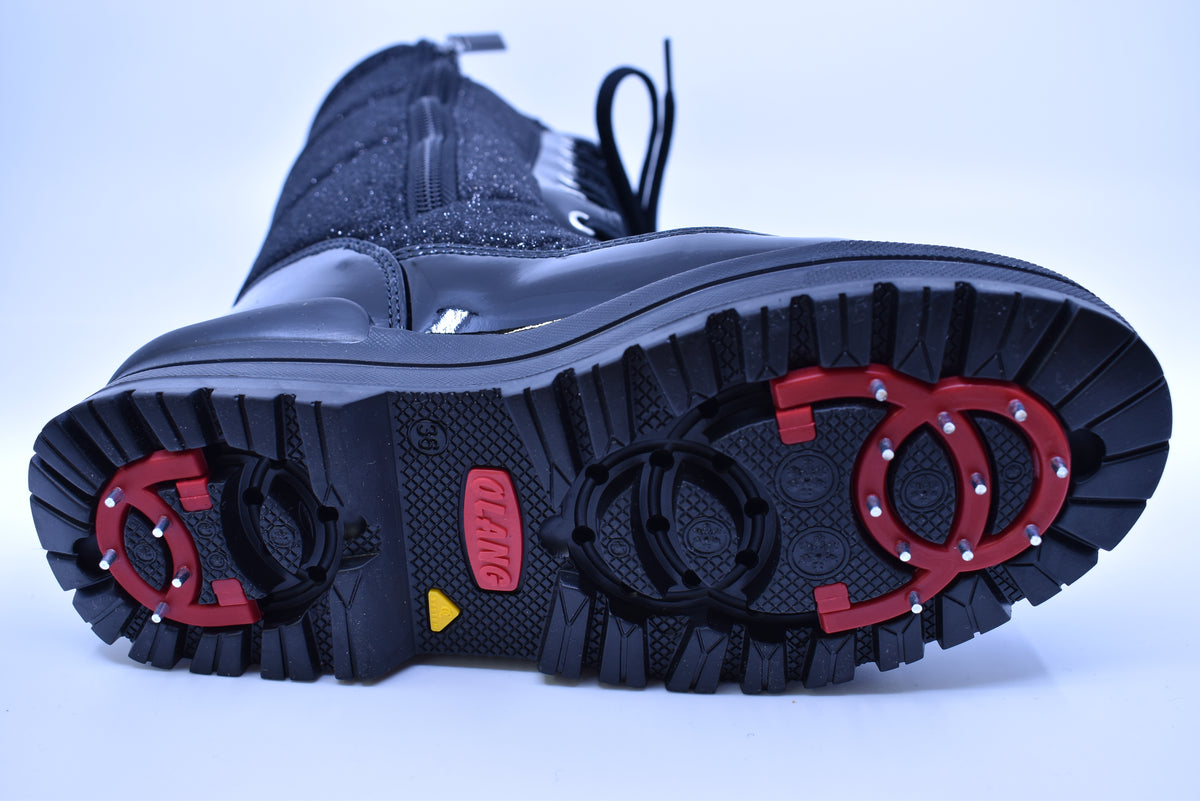 La botte d’hiver OLANG Glamour Lux est facile d’entretien, légère et idéale pour les hivers canadiens. Elle est waterproof et sa doublure en laine tiendra vos pieds au chaud jusqu’à -30 °C. Son lacet permet de bien l’ajuster au pied et son zip intérieur de l’enfiler facilement et rapidement. Sa semelle intérieure amovible est idéale pour la faire sécher et sa semelle extérieure est antidérapante. Son système de crampons à bascule permet de les retourner pour les sortir au besoin pour plus de stabilité sur la glace. Conception européenne et confection faite exclusivement par une main d’œuvre adulte spécialisé. Comme elles sont faites petites, il est possible que vous ayez besoin de prendre une pointure de plus qu’à l’habitude.