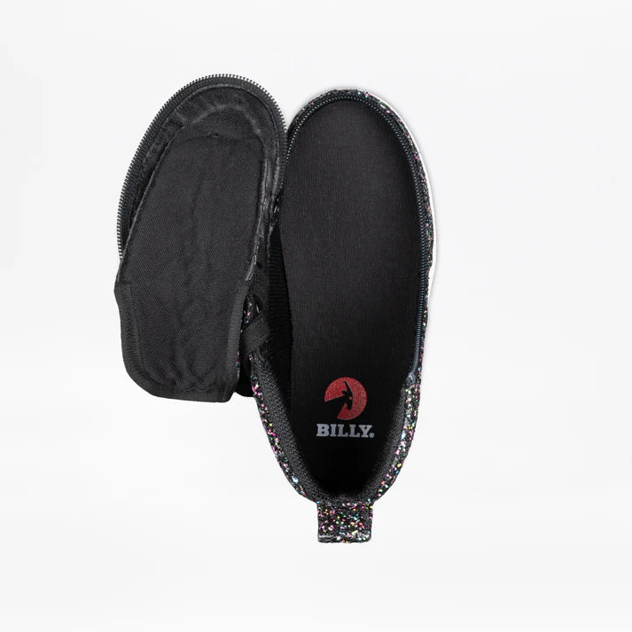 Prendre une grandeur de plus de que le pied mesuré. Le bottillon d’intérieur BILLY FOOTWEAR B23153 DR Glitter F est tout simplement révolutionnaire !! Son lacet permet de bien l’ajuster sur le pied et son zip jusqu’aux orteils permet une ouverture complète du soulier qui facilite l’enfilage. Ce modèle est conçu spécialement pour convenir à l’orthèse tibial. Il est fait plus large et plus haut sur le dessus du pied, il est doté de deux semelles amovibles pour un meilleur ajustement de profondeur et sa doublure intérieure robuste est plus résistante au frottement. Le fondateur de cette compagnie est lui-même en fauteuil roulant et il avait de la difficulté à trouver des chaussures faciles à mettre, il les a donc inventés. MERCI monsieur Billy !! Disponible en largeur : M (MDR = Medium)