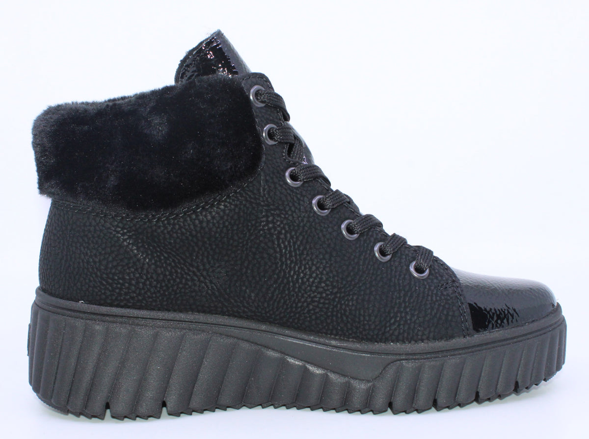 Le bottillon d’hiver RIEKER N2505 est idéale pour les journées froides. Elle est imperméable et doublée en laine de mouton vierge afin de tenir vos pieds au chaud. Son lacet permet de bien l’ajuster au pied et son zip de l’enfiler facilement et rapidement. Sa semelle intérieure est amovible et sa semelle extérieure est antidérapante pour plus de stabilité.