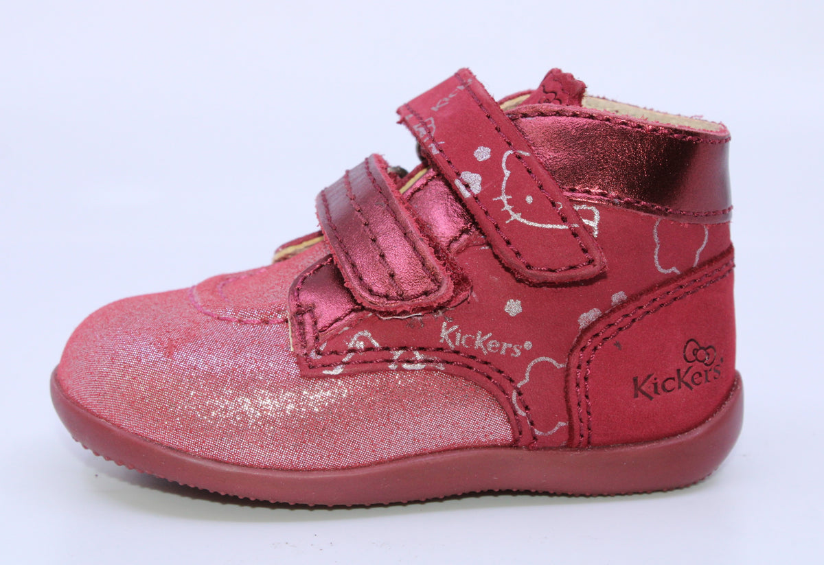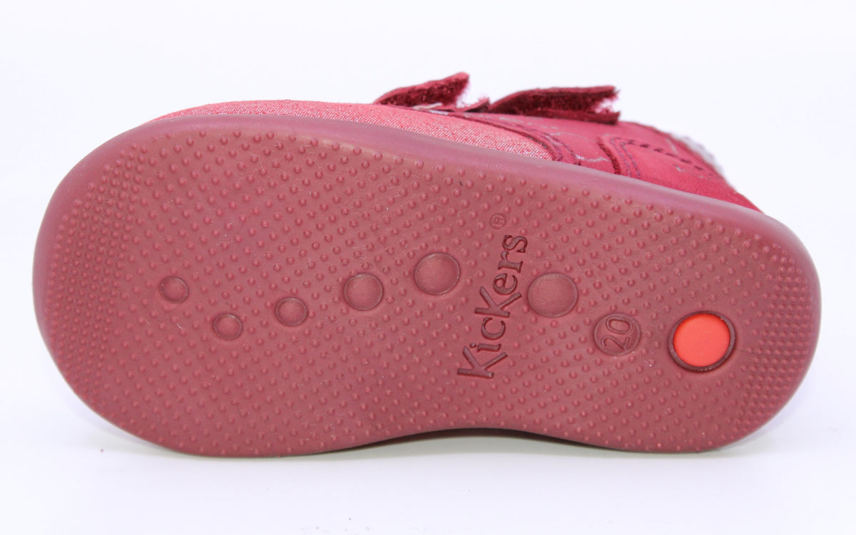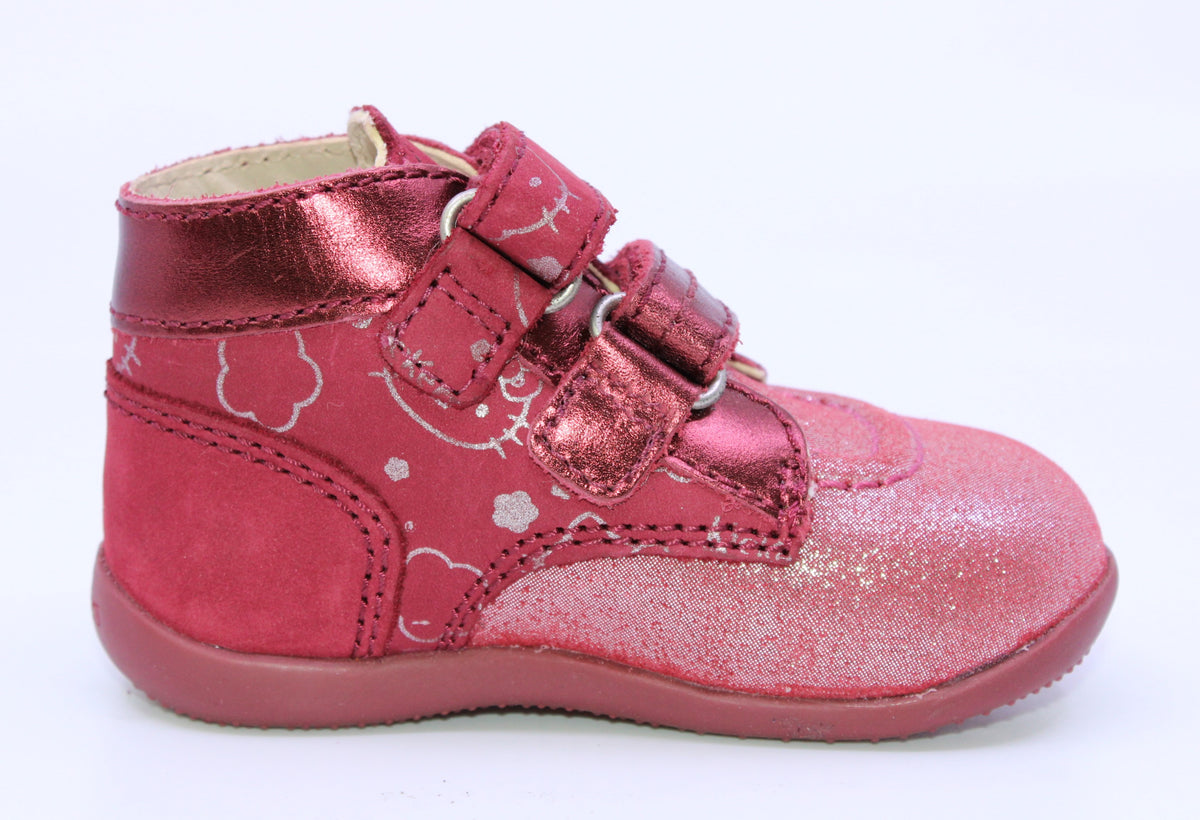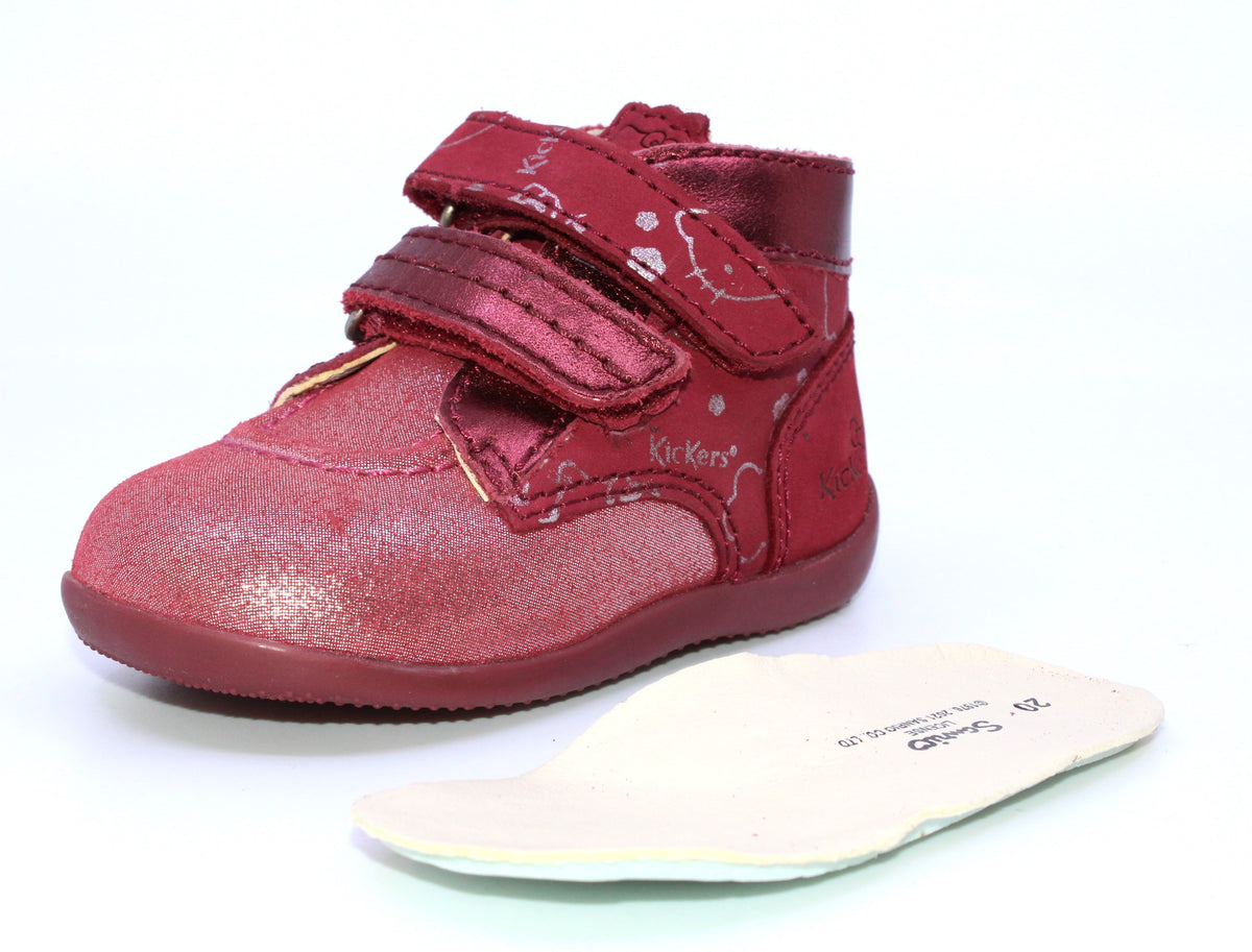 Prendre la même grandeur que le pied mesuré. La bottine de marche KICKERS Bonkro-2 F en suède accompagnera la marche de votre bébé avec soutien et confort. Ses deux velcros permettent de l’enfiler facilement et rapidement. Sa semelle intérieure est amovible et sa semelle extérieure est antidérapante pour plus de stabilité.