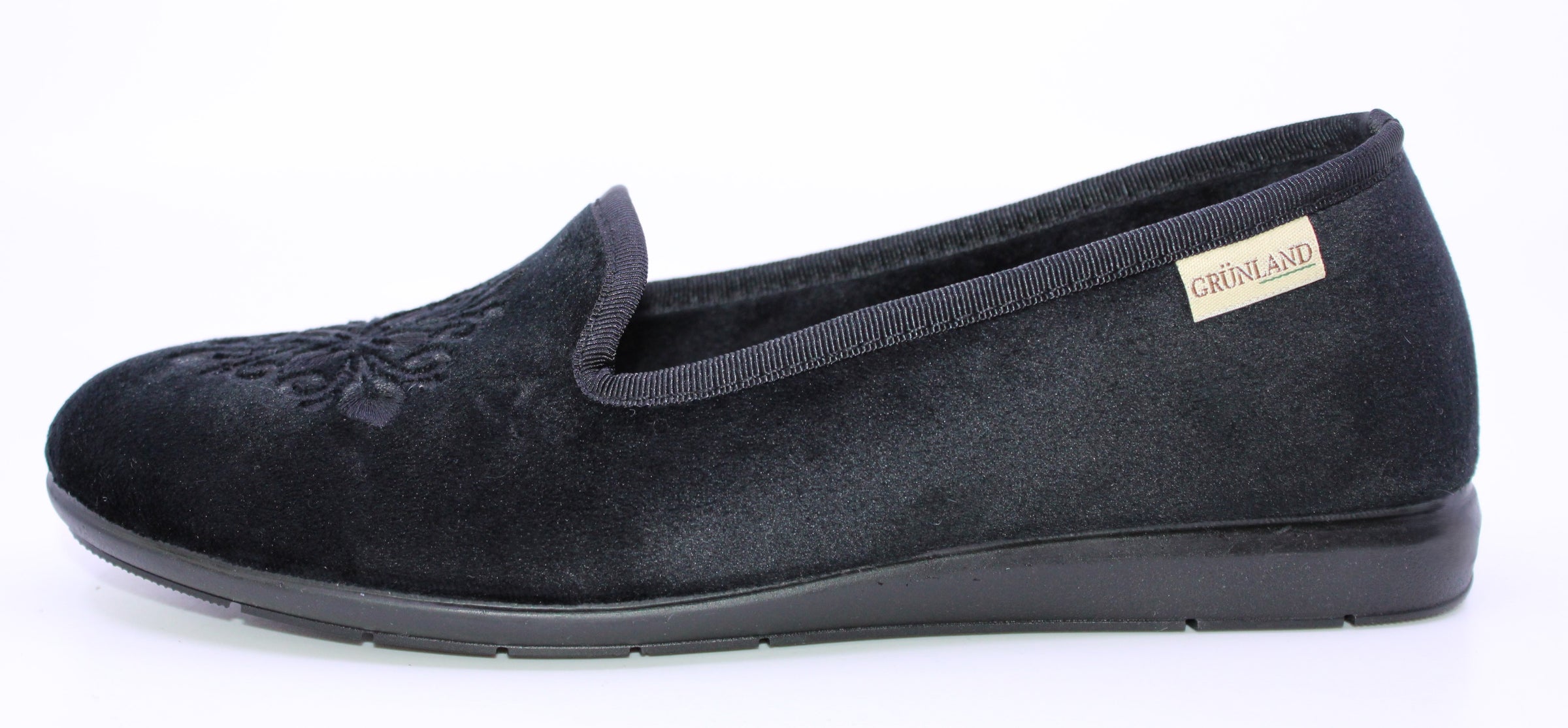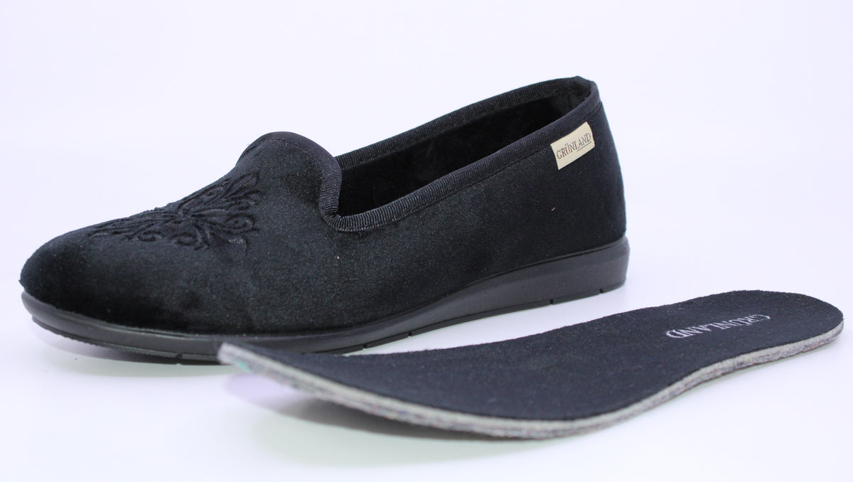 La pantoufle GRUNLAND PA0687 W est jolie et confortable. Elle est faite de tissu et s’enfile facilement en y glissant simplement le pied. Sa semelle intérieure est amovible pour y insérer votre orthèse au besoin et sa semelle extérieure est antidérapante pour plus de stabilité.