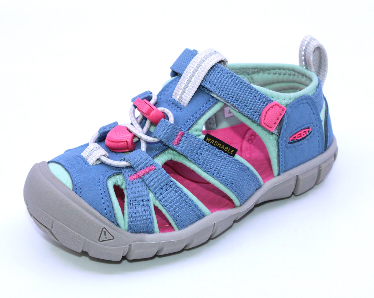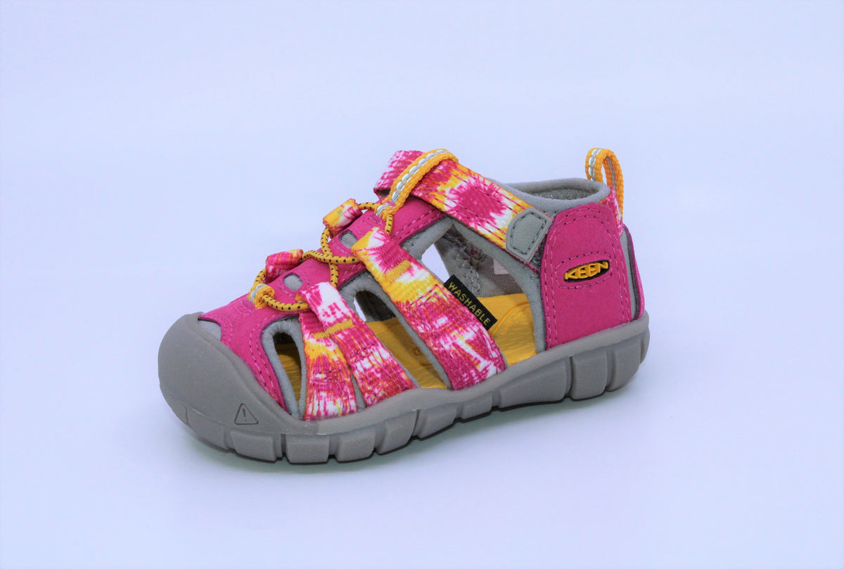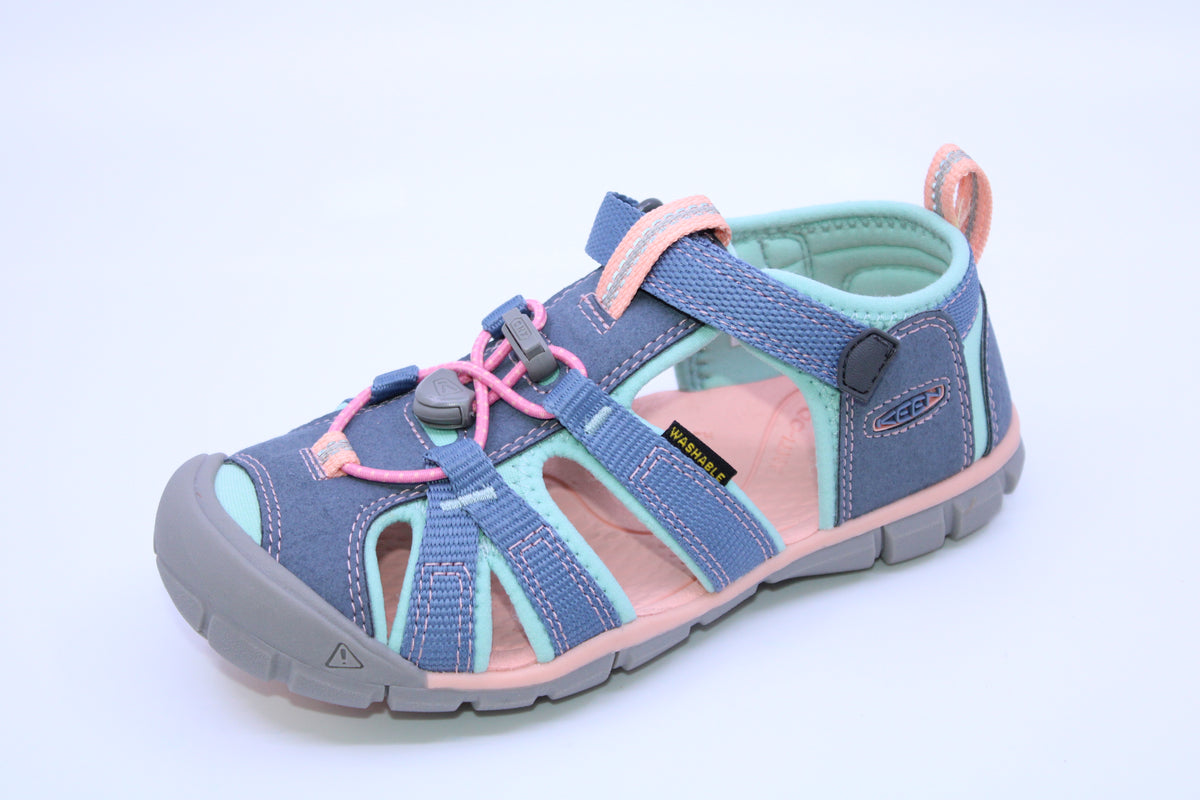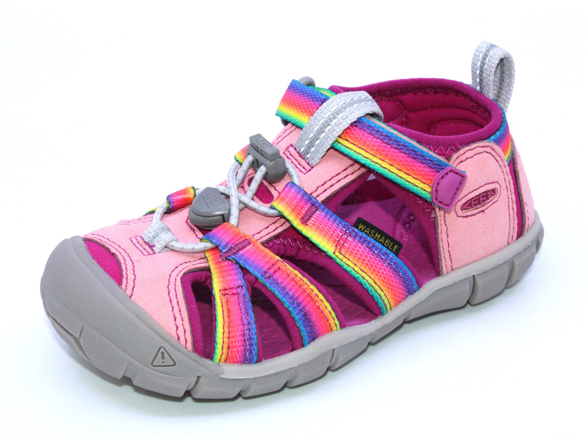 La sandale Seacamp II de Keen est parfaite pour les jours d’été. Avec son bout fermé qui protège les orteils, votre enfant pourra jouer en toute sécurité. Son bout de caoutchouc aide aussi à prévenir l’usure. Le bungee sur le dessus du pied offre un ajustement optimal et le velcro à la cheville permet de l’enfiler facilement. Cette sandale est aussi conçue pour aller dans l’eau !! Idéale pour les pieds réguliers à larges.